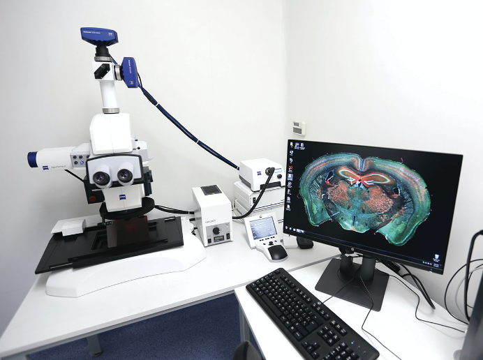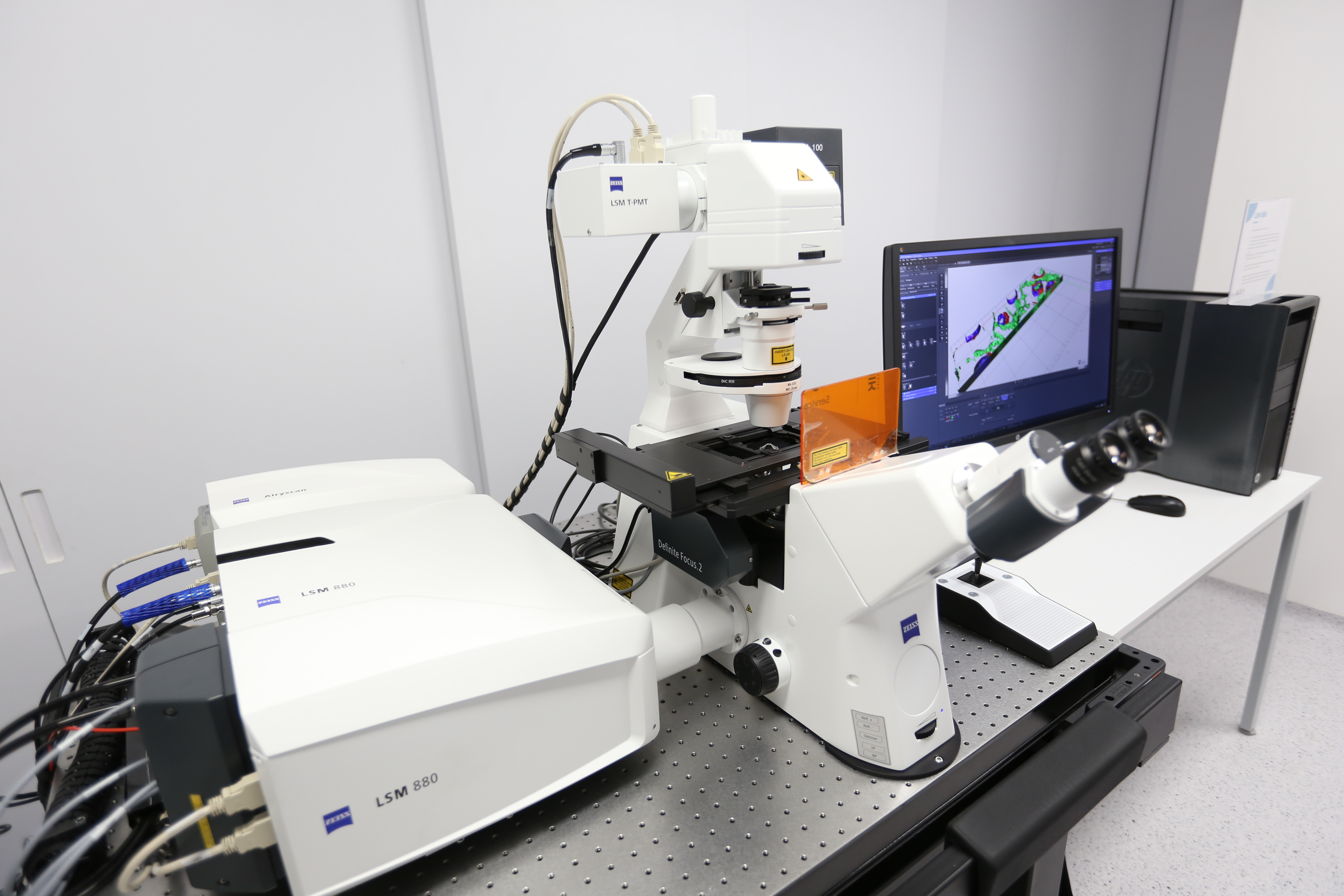 La Unidad de Microscopía cuenta con equipo de cómputo para procesamiento de imágenes con software ZEN Blue de Zeiss con licencia para edición y cuantificación de señales de fotomicrografías tomadas con los microscopios Confocal LSM 880 y AxioZoom.
